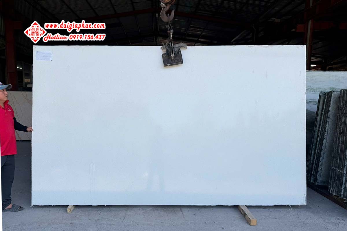 Chủng loại: Đá Nhân Tạo Màu sắc: Trắng Xuất xứ: Việt Nam Kích thước: 160*320, 200*350 Độ dày: 20mm Ứng dụng: Sản phẩm có độ bền cao, có khả năng chống trầy xước và chịu lực tốt, lý tưởng cho các ứng dụng nội thất hiện đại như mặt bếp, đảo bếp và ốp tường.